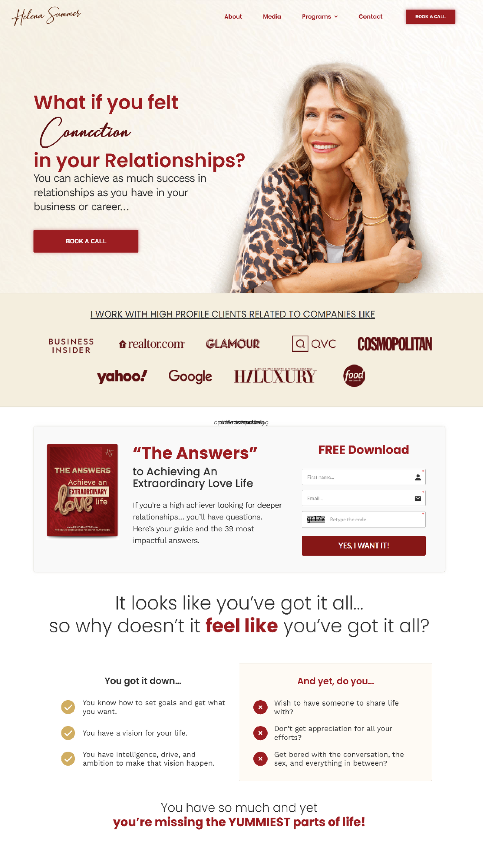 At BiTech Digital, we worked with Helena Summer, a Master Love Coach and Relationship Educator, to craft a high-performance website that reflects her powerful coaching programs and attracts the right clientele. We focused on creating a digital experience that embodies Helena’s expertise in guiding high achievers towards healthier, fulfilling relationships.
